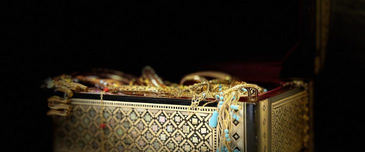 It is the day before my wedding. I flick back the brass latch of the checkered alabaster chest and the light catches the endless hoops, loops, beads and tangles of yellow gold in my grandmothers jewellery. The crimson velvet lining feels scratchy compared to the thick varnish that coats the wooden and pearly geometric shapes on the box’s exterior. Once I unload the gilded heap onto my grandmothers bed, I begin to wind my fingers through the knots that the…